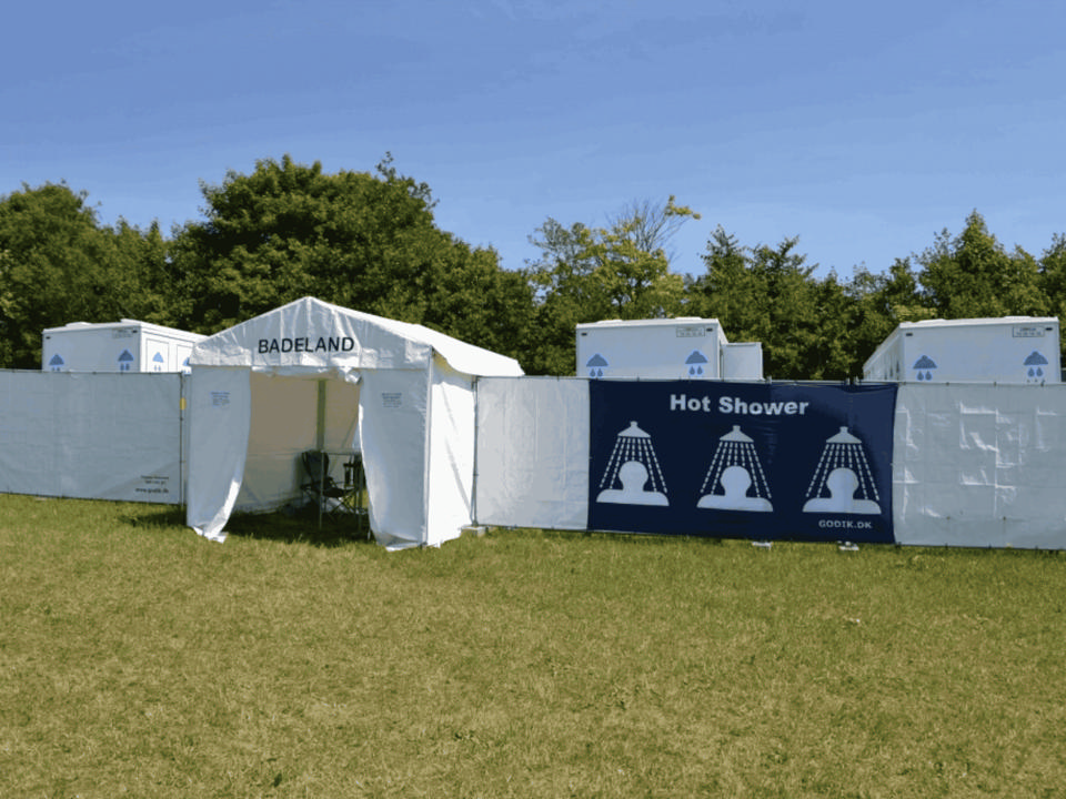Stor badevogn med 12 brusere og fire håndvaske – perfekt til festivaler og større arrangementer. Kombinationen af høj kapacitet og god hygiejne sikrer en behagelig oplevelse for brugerne. |