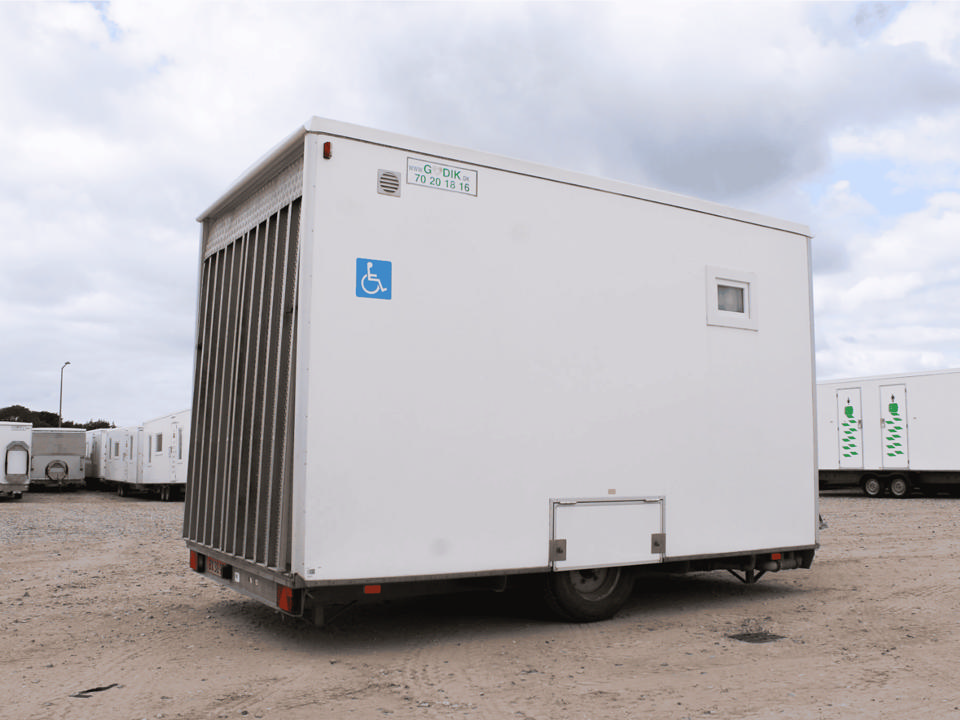 Handicap- og puslevogn med integreret tank - ideel til områder uden mulighed for tilslutning. Høj komfort og nem adgang for alle brugere. Godik leverer og servicerer efter aftale. |