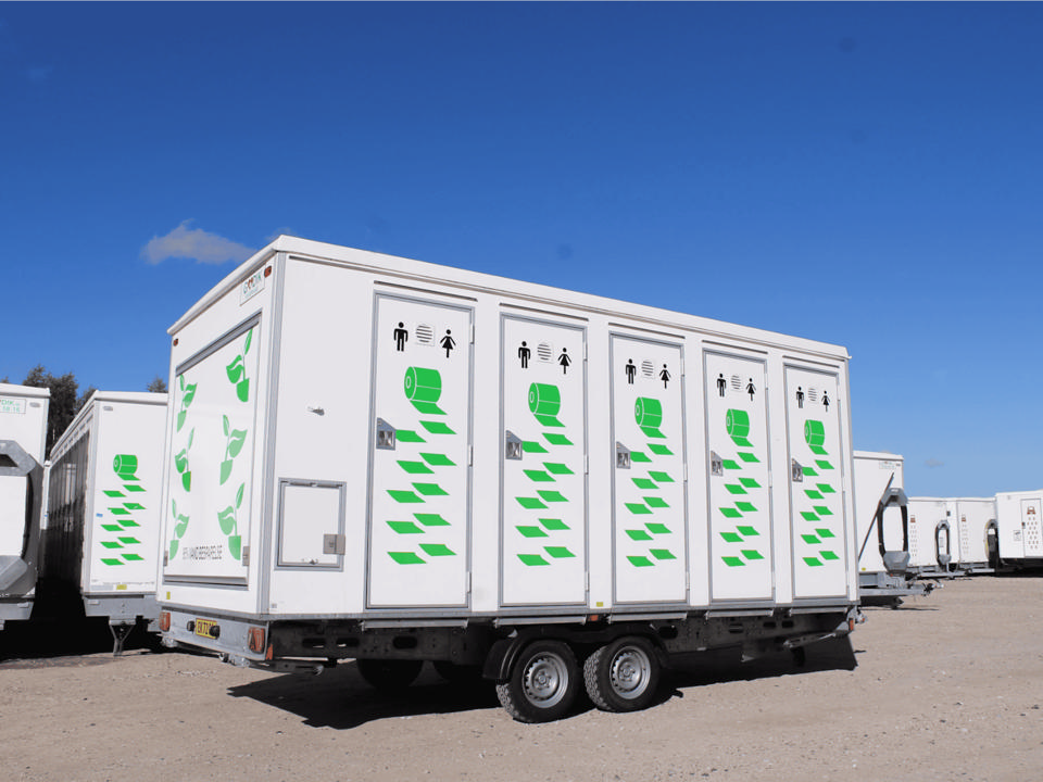 Vacuum toiletvogn med 12 toiletter og fire håndvaske på ydersiden. Designet til høj kapacitet og god hygiejne ved større events. Godik leverer, opstiller og servicerer for en problemfri drift. |
